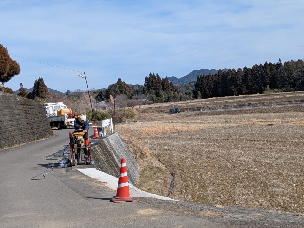 そんな暖かな日に「防護柵(ガードレール)設置工事」に着手しました。