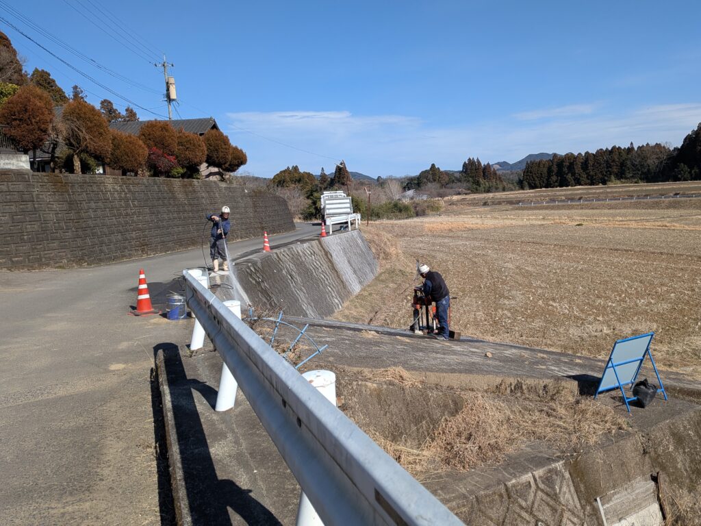 本日は杭を打ち込むための削孔作業です。