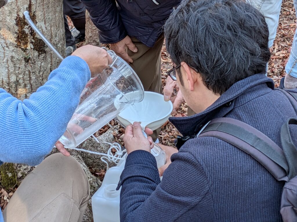 採れたての樹液は、甘みは控えめですっきりした味わいでした。