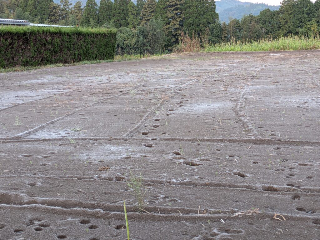 本社裏の畑に降りた初霜 👆
