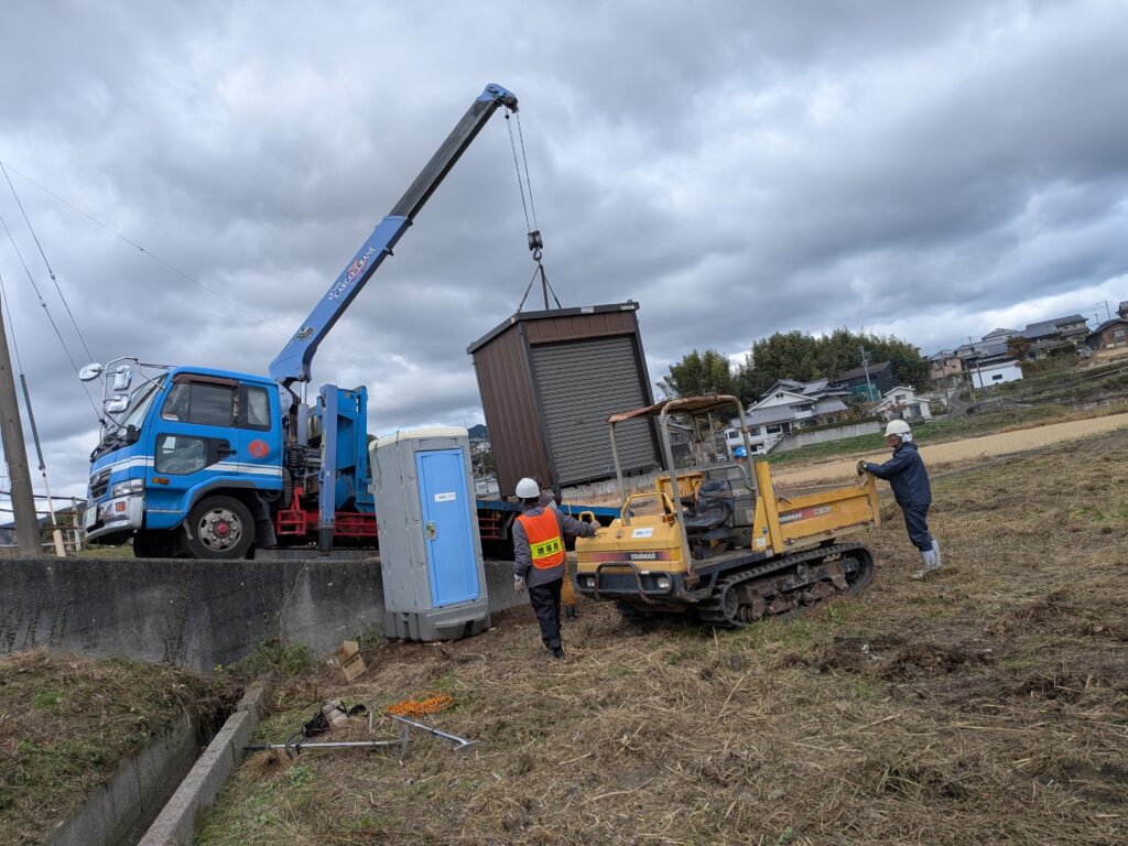 駐車スペース用の広場の草刈り、トイレや簡易倉庫の設置等で忙しそうでした。