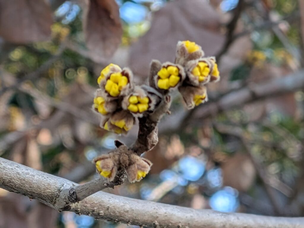 そんな陽気に誘われたかのように「志那マンサク」が咲き始めました。