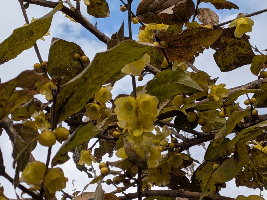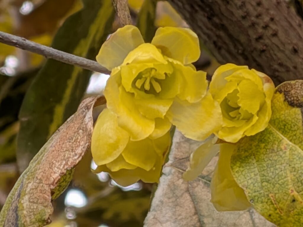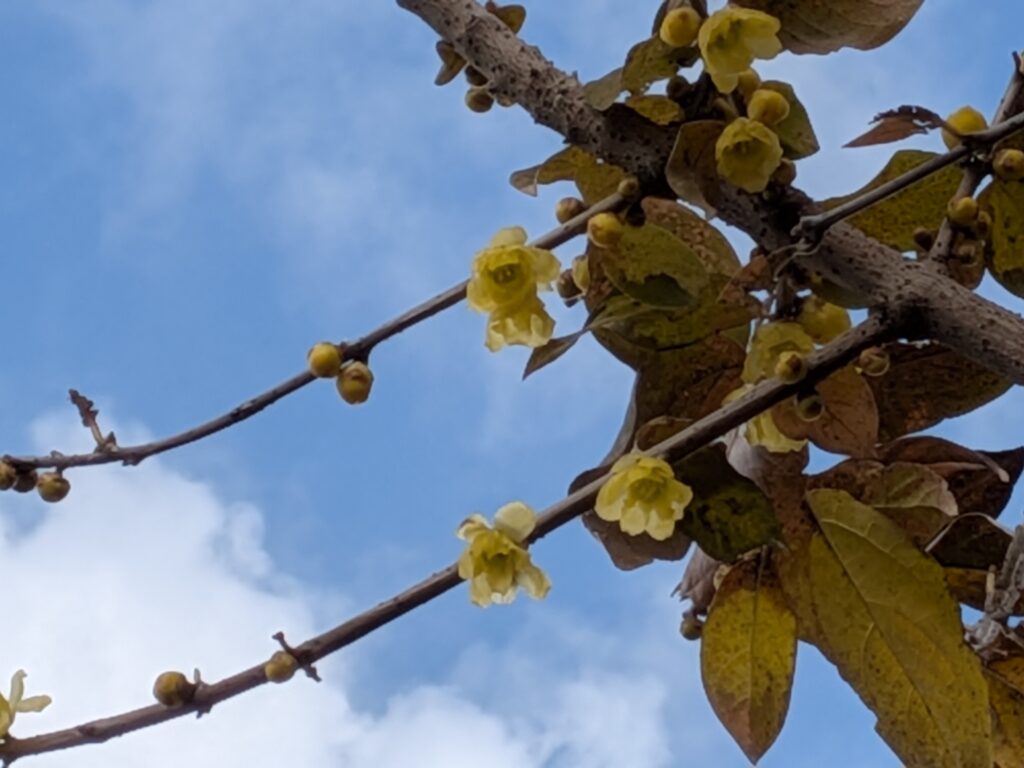 そんな暖かさにつられたのではないのでしょうが、早くも蝋梅が咲いています。