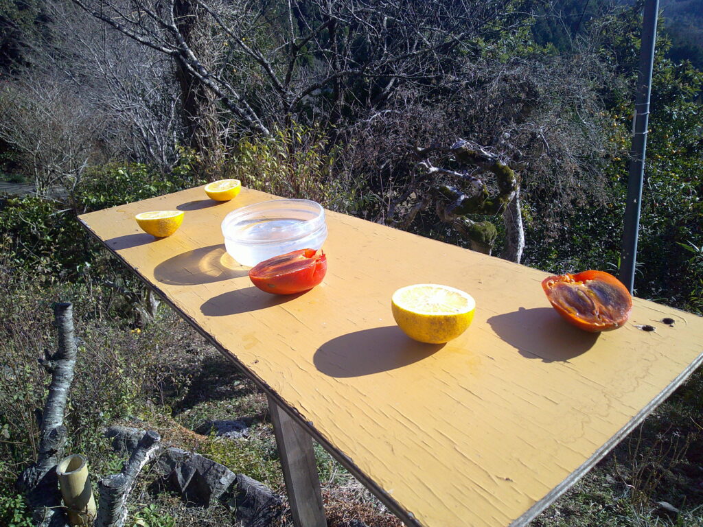 食べ飽きた柿も一応置いてあります(笑)