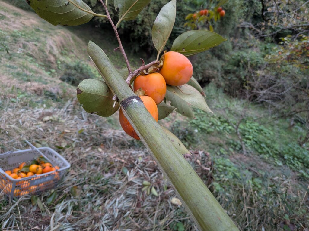 週明けには寒くなりますよの天気予報を信じて、昨日は渋柿を捥いで干し柿づくりをしました。