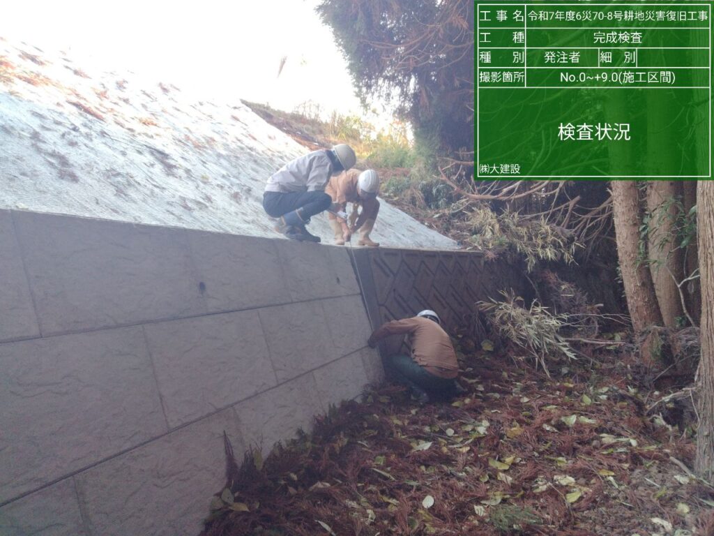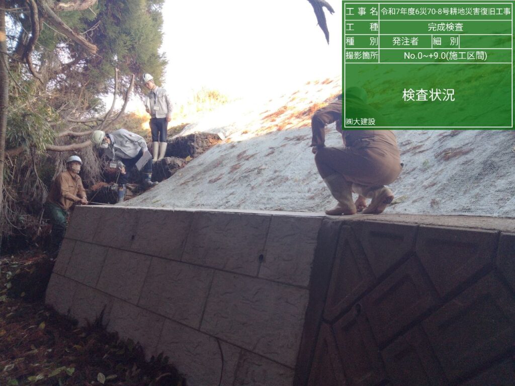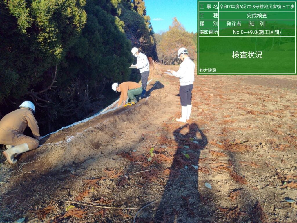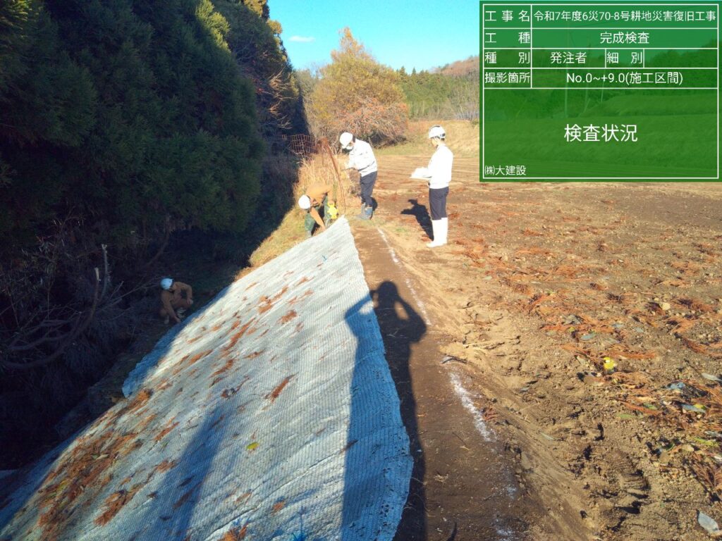 一昨日、耕地災害復旧工事現場の完了検査を受けました。