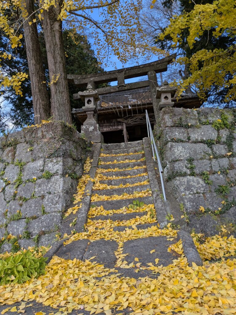 写真は、犬飼町山田の山田神社のイチョウの落葉です。