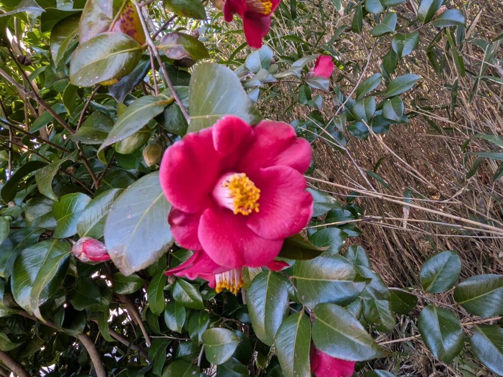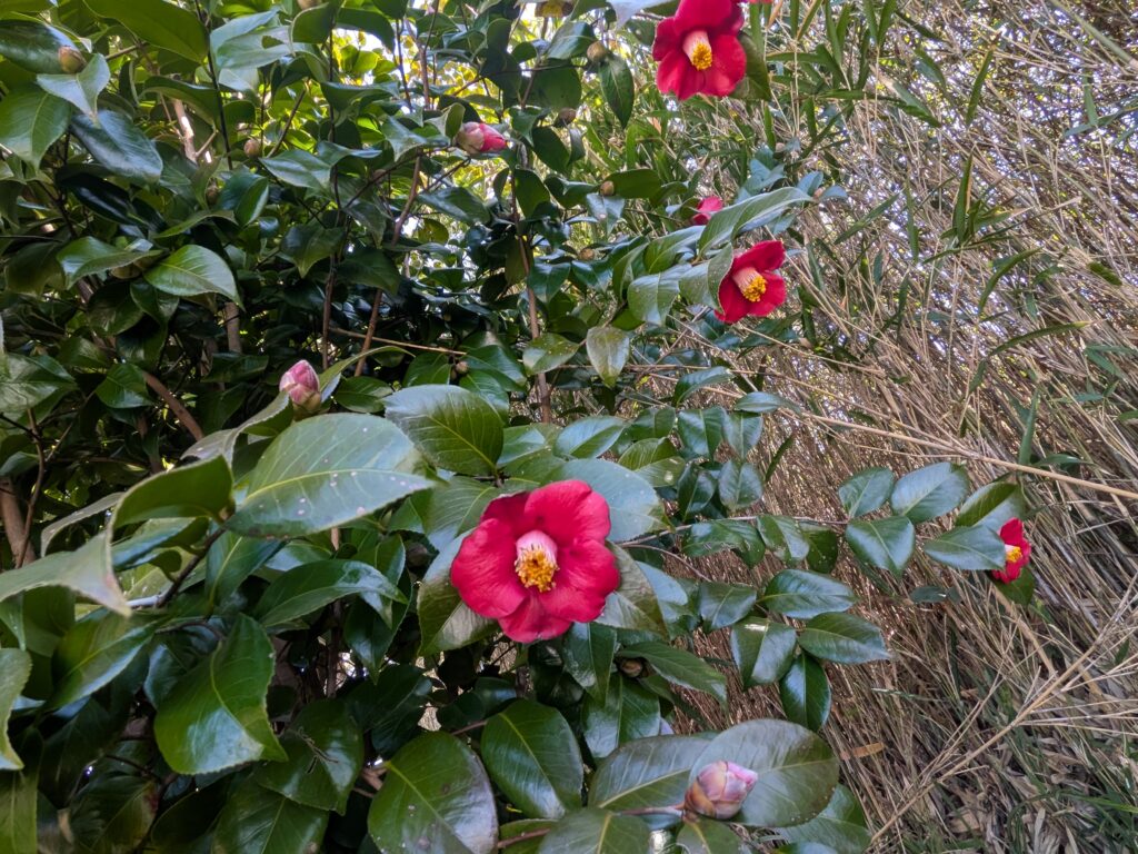 本日は昨年12月頃から咲き始め、そろそろピークを迎えつつある「藪椿」を紹介します。
