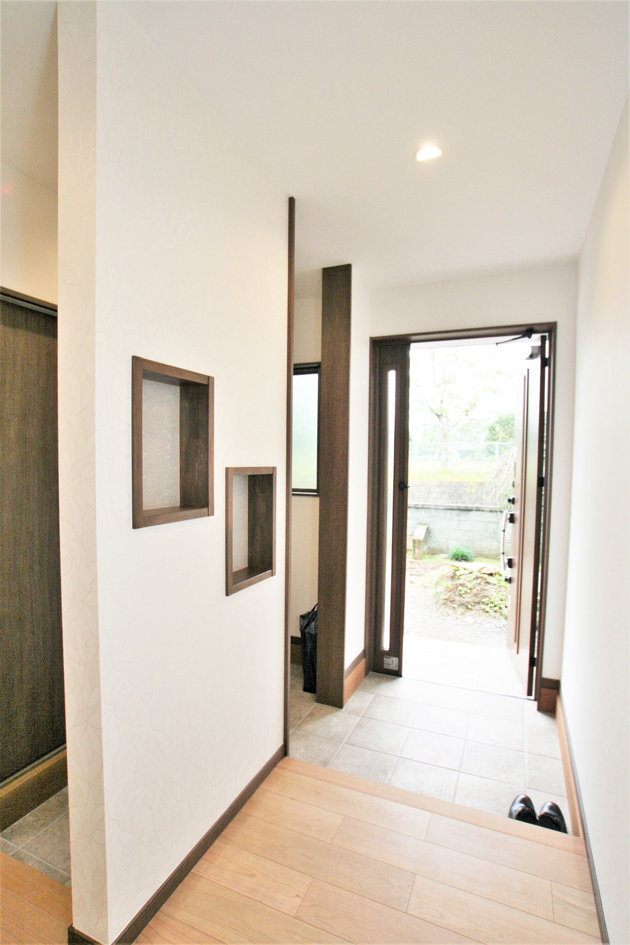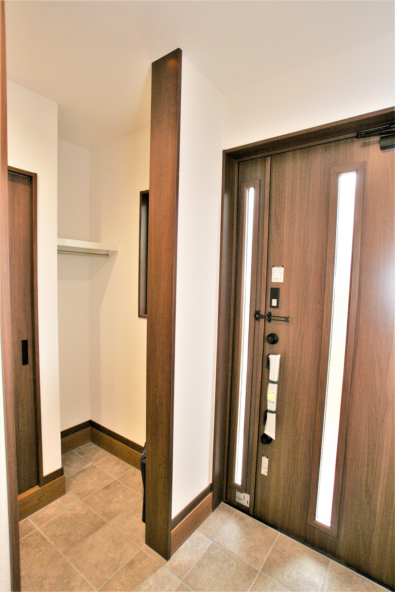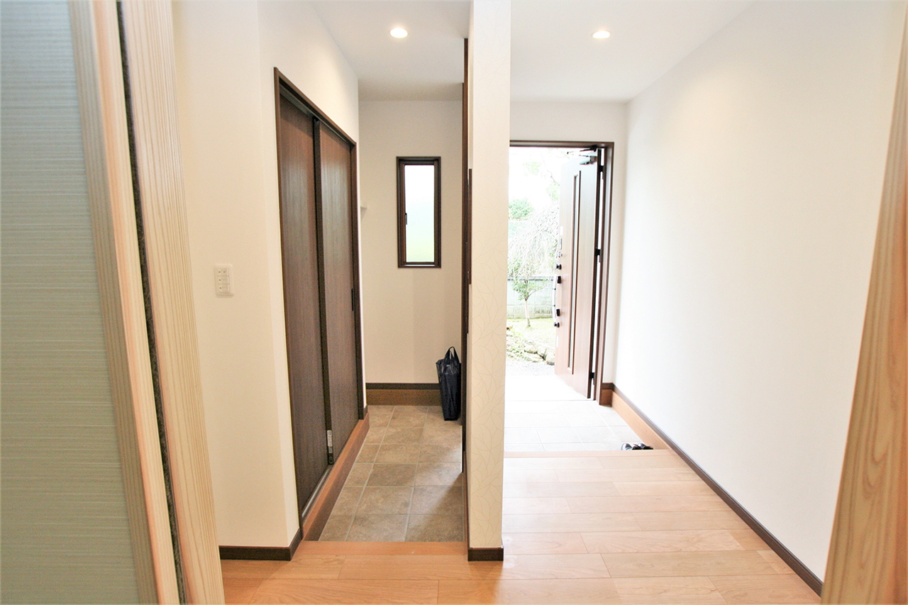 玄関はシューズクロークと土間収納スペースを設け、靴だけではなく傘やゴルフバッグを置いたり、上着やレインコートをかけることもできます。