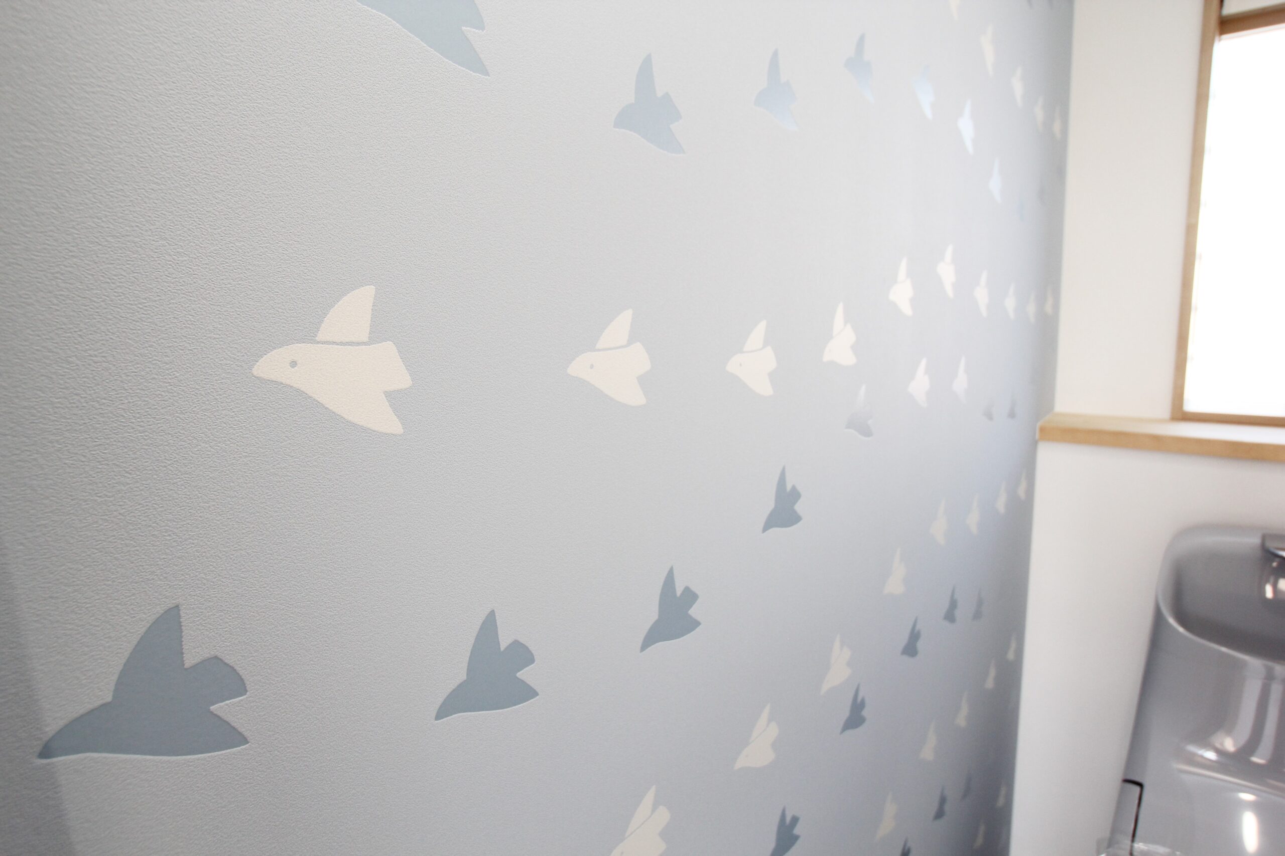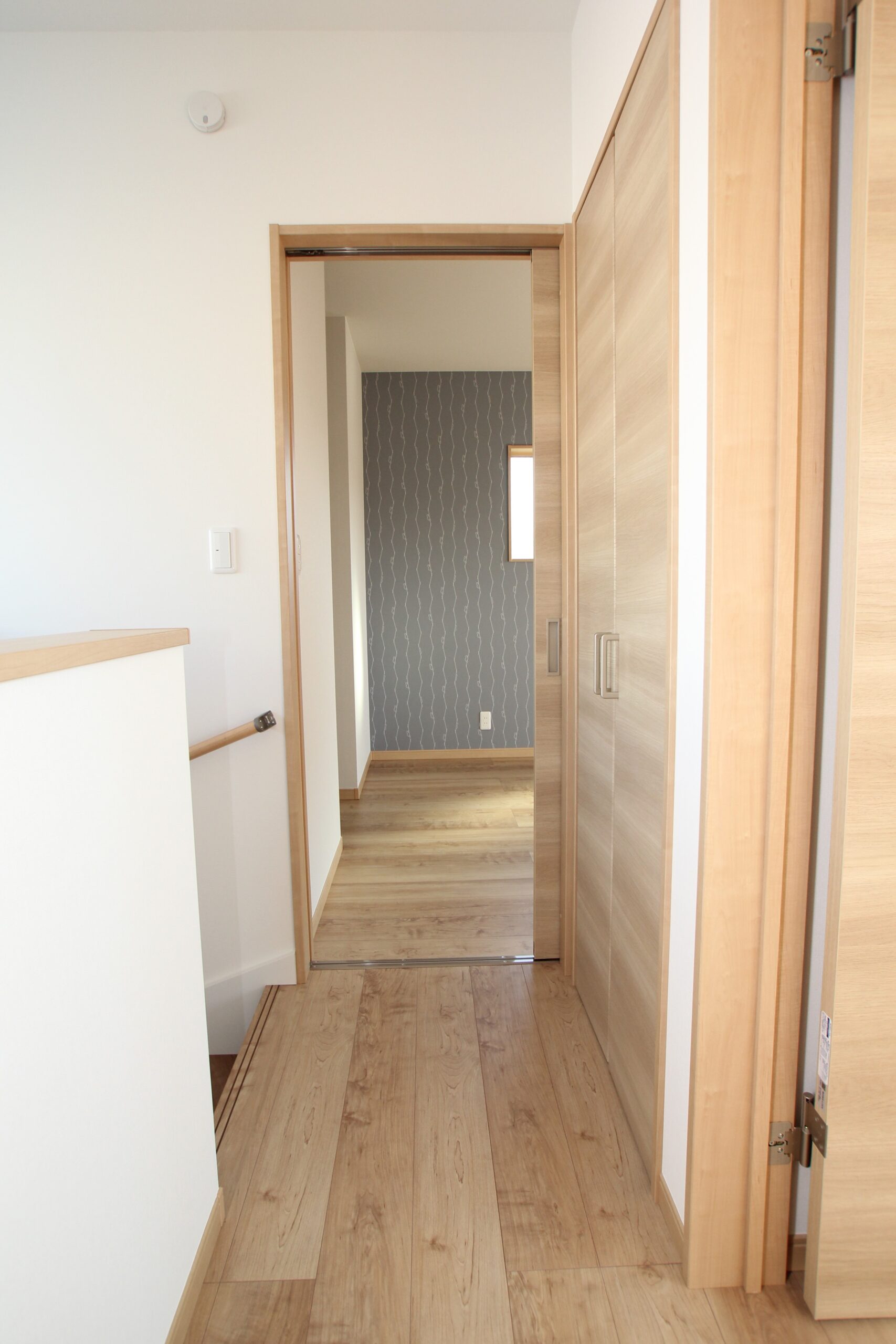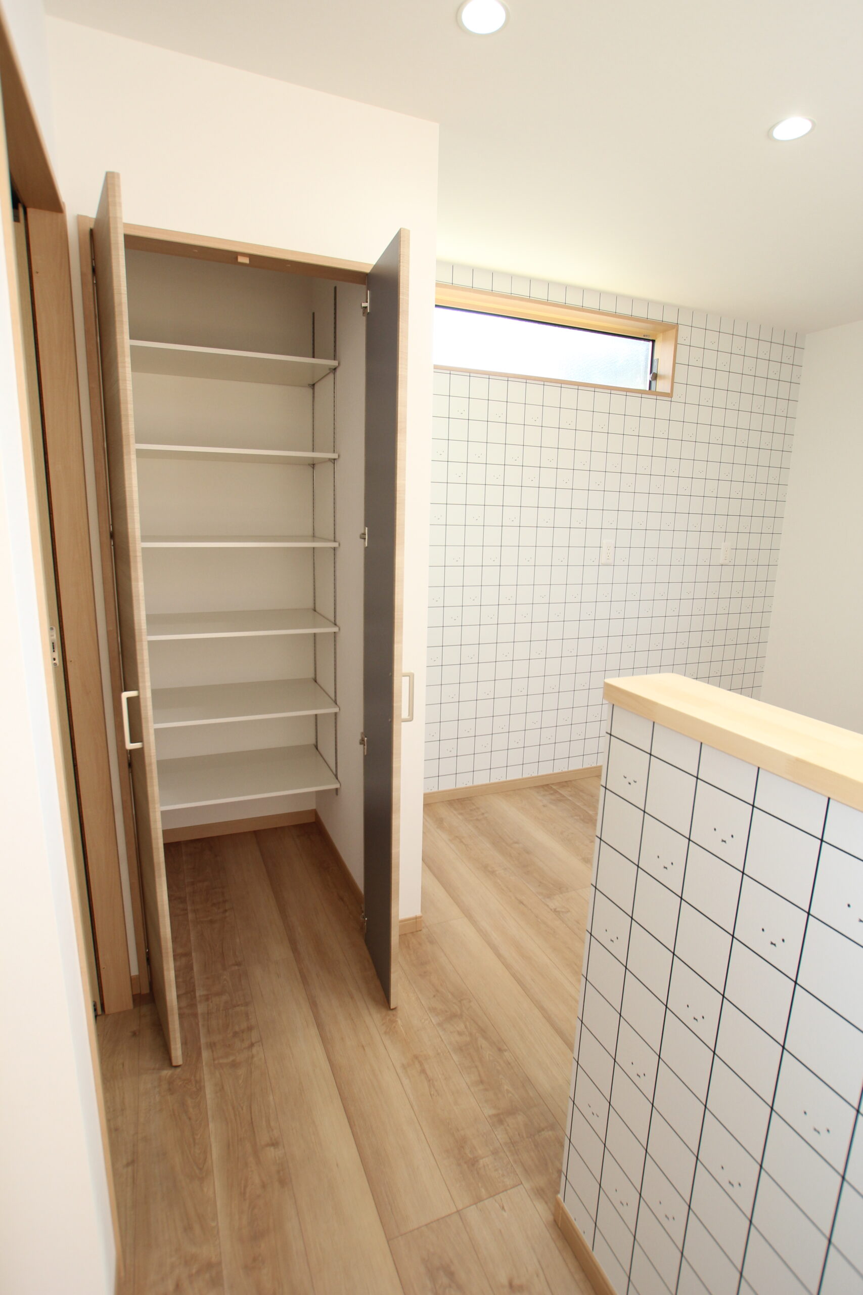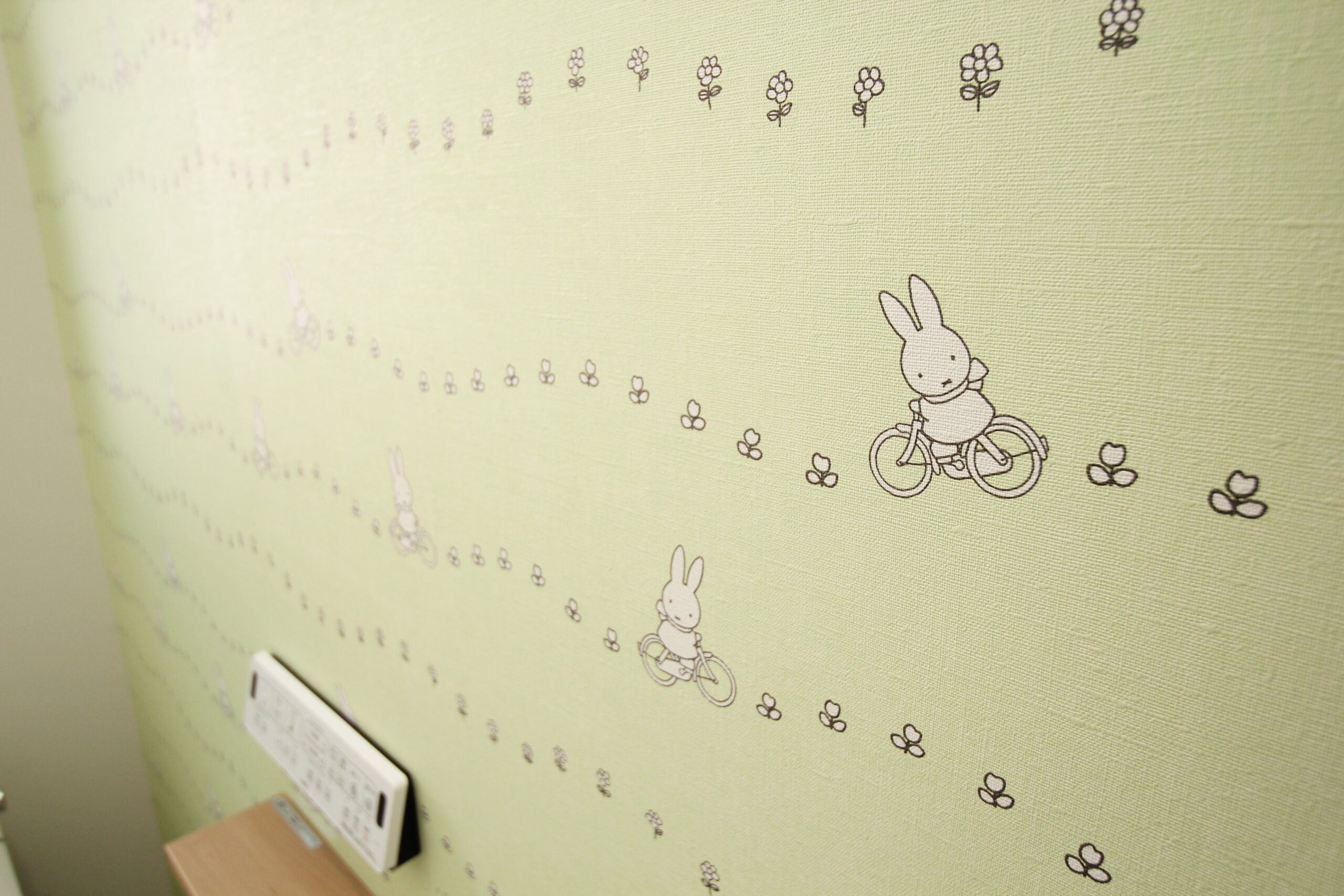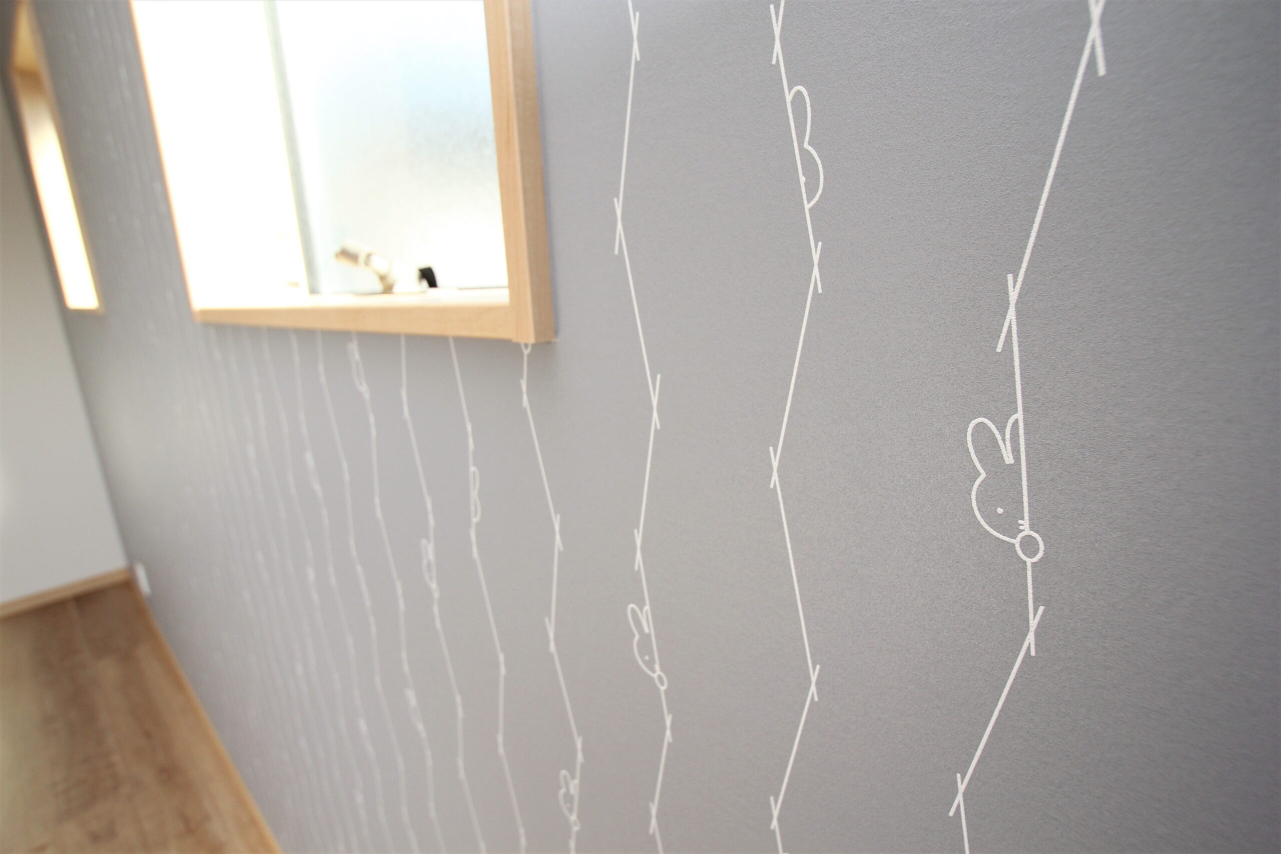2階には旦那様の書斎スペースも。各所に採用されたミッフィーのアクセントクロスが愛らしく、楽しい気持ちになるお住まいです。